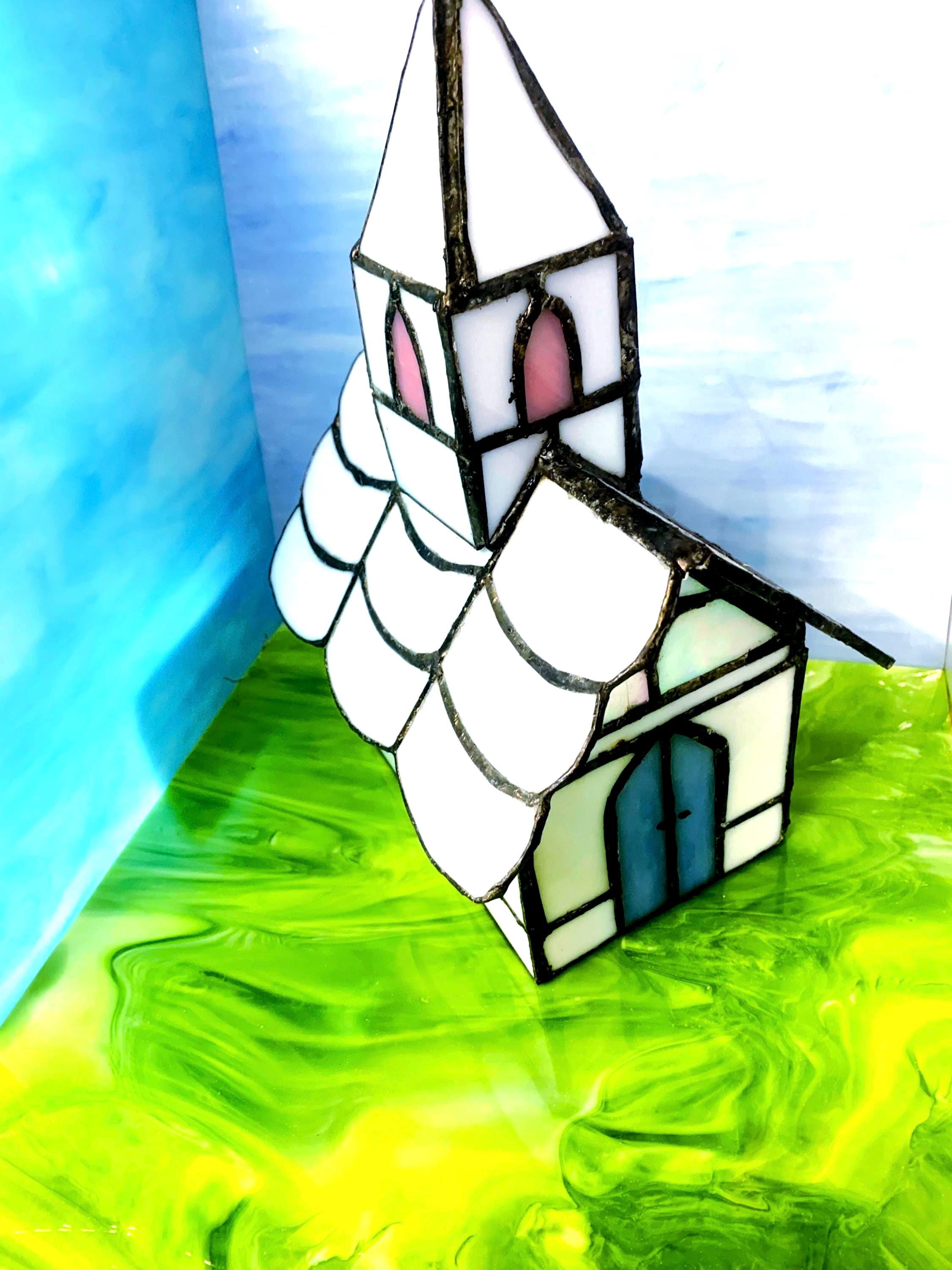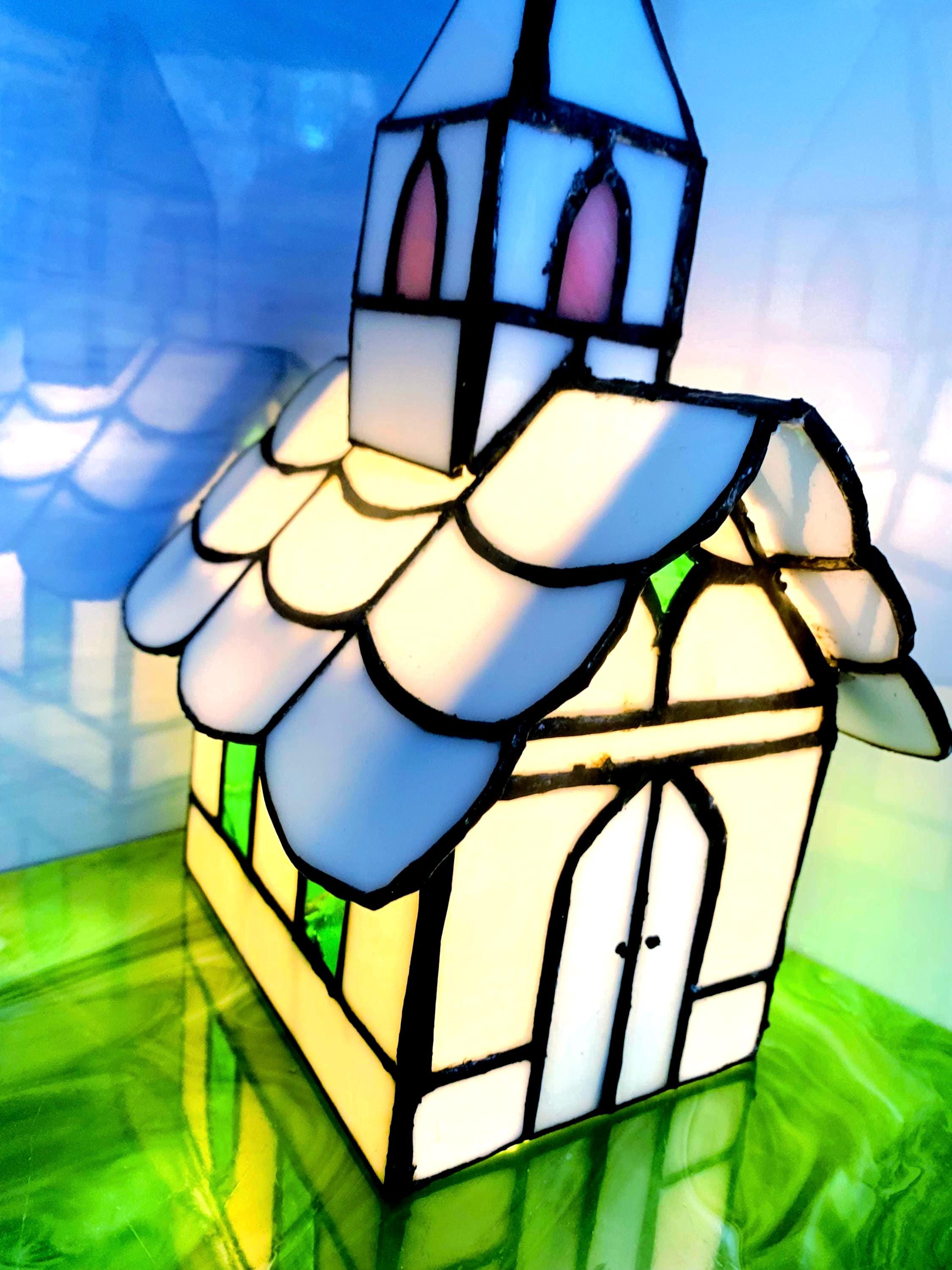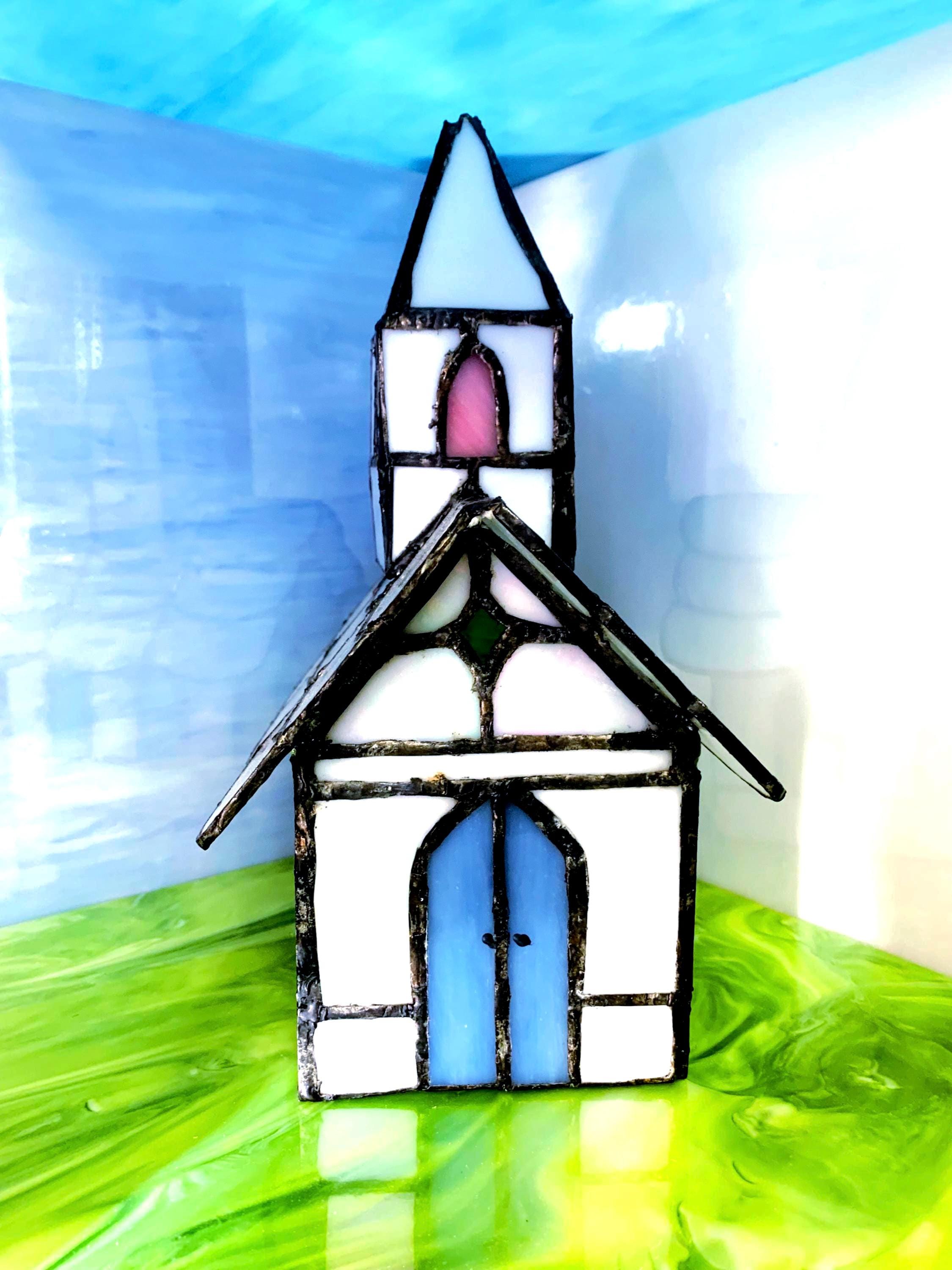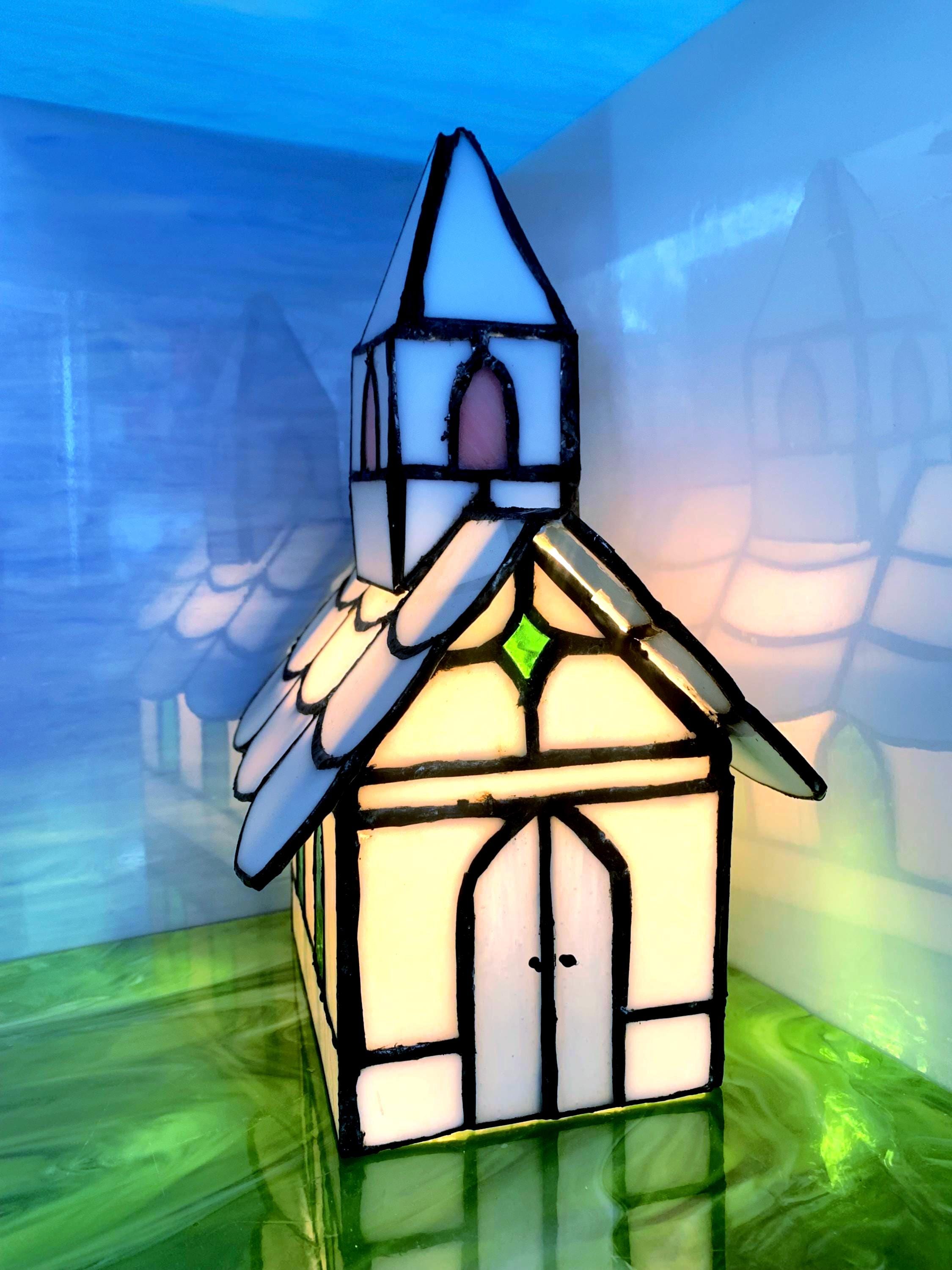 Handcrafted stained glass church night light. Cozy little country church that glows softly when plugged in — perfect for a hallway, bedroom, or shelf.